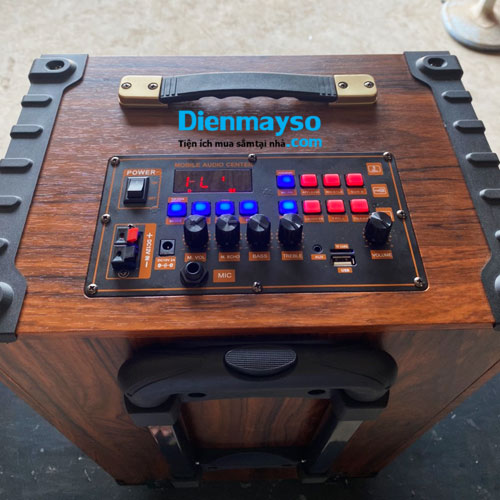 Loa Kéo di động Msmart V12 với thiết kế vỏ ngoài bằng gỗ 2 mic xin hát karaoke cực hay âm thanh lơn trống bass đập cực chắc giá rẻ tại shop dienmayso.com